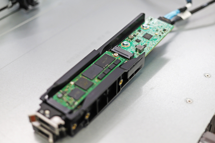 我之前提到了 BOSS 卡,它已经为最新一代的 PowerEdge 进行了大修。从本质上讲,BOSS 卡使用户能够将两个 M.2 SSD RAID 在一起作为启动卷。从历史上看,这些类型的引导设备是系统内部的。